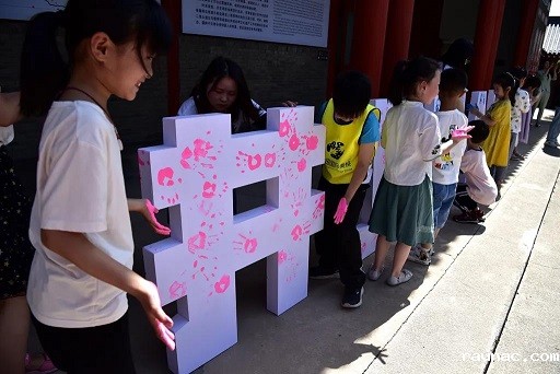 活动共分五个章节,展出孩子们自己的画作200多件。活动开幕式上,手上沾了彩色颜料的孩子们放飞天性,把小巴掌印在主题字上;把代表梦想的彩色纸飞机抛向天空;身着靓丽节日服装的孩子们还玩了一把T台秀,把主题活动推向高潮。