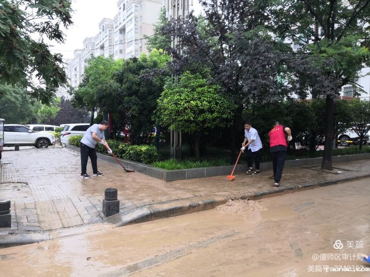 7月20日,受强对流天气影响,hth登录网页入口县城遭受大暴雨袭击,县城区域内部分公共设施、人行道、树木、道路路面等遭受损毁,一片狼藉。7月21日早,hth登录网页入口审计局及时组织党员干部职工对分包区域环境卫生开展整治,对地面淤泥等进行清理,保障道路安全畅通。大雨无情人有情。面对极端恶劣天气,hth登录网页入口审计局积极响应,用实际行动帮助群众,紧紧围绕“我为群众办实事”实践活动要求,在小事中体现共产党员的使命,在平凡中展现共产党员的初心,将为群众办实事、解难题落到实处,哪里有需要,哪里就有审计干部的身影。通过对分包责任区域的环境卫生整治,让广大党员同志和干部职工心往一处想、劲往一处使,用实际行动让群众真正体会到党的温暖和关怀。
