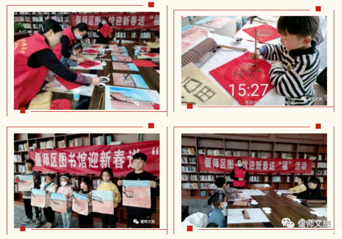 1月11日下午,图书馆在洛神苑书房举办了迎新春送“福”活动。邀请了书画讲师如真老师带领小朋友们读古诗、画古诗、写福字,品味传统文化,感受年俗魅力。现场热闹祥和,小朋友们都收获满满。通过活动,弘扬了中华优秀传统文化,展现了中国书画的艺术魅力。