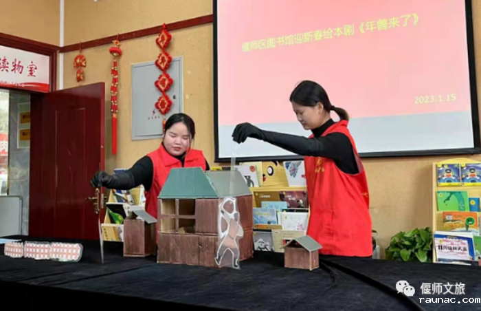 1月15日下午,图书馆联合熊爸爸绘本馆在华夏广场书房,上演新年绘本剧《年兽来了》。这是一部经典民俗故事,通过老师们的精彩表演,告诉小朋友们,为什么每到过年的时候,大家都吃饺子、放鞭炮、穿红衣、贴春联。