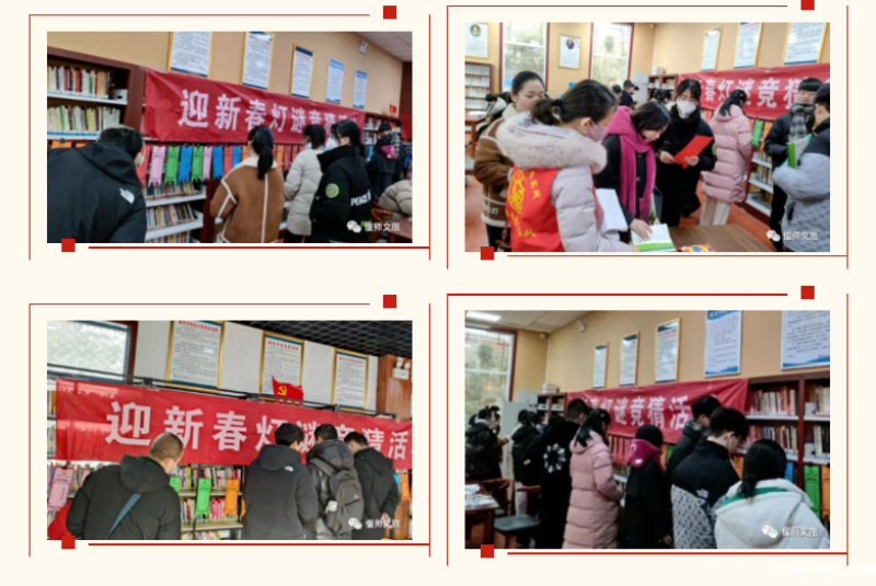 hth登录网页入口图书馆于1月26日-1月27日分别在人大政协书房和华夏广场书房举办“灯谜竞猜活动”。本次挑选的灯谜内容丰富多样,有猜字、动物、成语、地名等等,涉及知识面广,趣味性强,在弘扬中华民族传统文化的同时,还增添了节日的文化氛围,有100多人次参与活动,受到了广大读者朋友和市民的热烈欢迎。