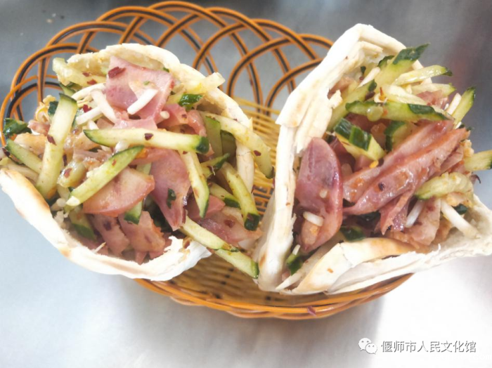 hth登录网页入口顾县村张万兴肉合是河南省洛阳市的传统小吃之一,属于豫菜系;该菜品发源于河南省洛阳hth登录网页入口顾县镇。顾县肉合与“火烧夹馍”、“白吉馍”完全不同,第一,顾县肉合使用的不是发面,而是死面;第二所用的肉是凉拌猪头肉和少量的黄瓜,而不是热的酱肉;肉合的大小与白吉馍差不多,但皮薄酥脆,刚出炉的饼合圆鼓鼓的散发着清香,饼是中空的,出炉之后用刀把饼从中间划开,当然不能划透,饼就成了张开嘴的大贝壳,然后把调好的猪头肉放进去,以黄瓜作辅料,为的是爽口,好吃,酥脆。下面就来详细说说顾县肉合的做法。第一步:建造面饼。顾县肉合的面饼必定要硬,所以和面时水放的相对较少。都是按照没500克面粉,炎天190克水,冬天200克水的比例来建造面坯。将面粉纳入盆内,少量屡次的将水渐渐浇入。先将面粉搅成絮状,再渐渐添水活和成面团后用塑料布盖好,略微醒15分钟。到时辰后,将面团揉滑腻。由于面团较硬,故斗劲费劲。然后分成120克摆布的剂子待用。发面的建造:用老面肥建造的要比用发酵粉做出的饼香。做法和一样平常发面的工序同等。每次留好面种,下次就可以直接发制了。先将剂子搓成棍状,然后擀成牛舌状。此时从发面团上揪下来鹌鹑蛋巨细的一块发面,将其在油里蘸一下,再放到牛舌面饼的一端,将饼从一侧渐渐卷起,将发面包到其中。当卷到离另一端还有2-3公分时,将另一端的面皮扯一下,搓成细细的一公约8厘米长面棍,如同鼠尾。此时继续卷起如橄榄状后,将鼠尾缠绕在它的中部一圈,捏紧接缝处。再将橄榄面卷的上下两头如同拧螺丝一样扭几圈,将发面剂彻底封死在里面即可。压扁面卷,用枣核杖擀成薄一厘米摆布的面饼即可。第二步:烤制硬面肉合饼。选用一样平常的建造烧饼的炉,电烤气烤均可。先将面饼放到铸铁板上,轻按面饼转一下,烙到面饼两面都出现一圈火色,即可放入炉中烘烤。烘烤的时辰和火候这个要看经历,也是我独一无法想您声名的,由于发面的存在,会使中心鼓起,而油则促使饼皮分层。烤到概况颜色泛黄,敲击卡拉卡拉响,内部鼓起,即可掏出使用了。