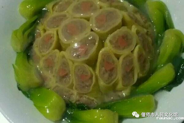 偃师八大扣碗,是流行于夹河滩的一道传统特色菜,通常包括酥肉、黄焖排骨、梅菜扣肉、肘子肉、卷煎、丸子、豆腐、八宝饭,大部分是以肉类、红薯淀粉为原料,一般采用先蒸后炸的方式制作,味道妙不可言。