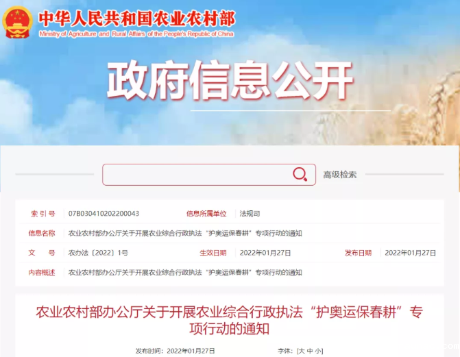 为确保2022年春节、北京冬奥会和冬残奥会、全国两会期间农产品质量安全,保障春耕生产顺利进行,近日,农业农村部决定2022年在全国开展农业综合行政执法“护奥运保春耕”专项行动。