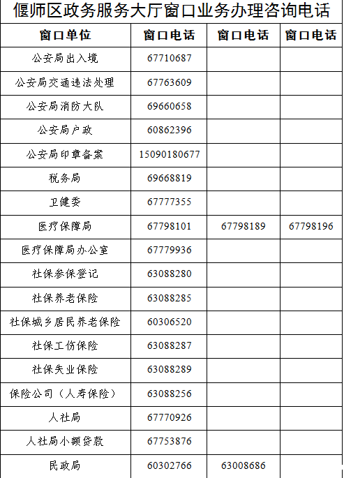 hth登录网页入口行政服务中心公布华体会彩票网址大厅各窗口业务咨询办理联系方式