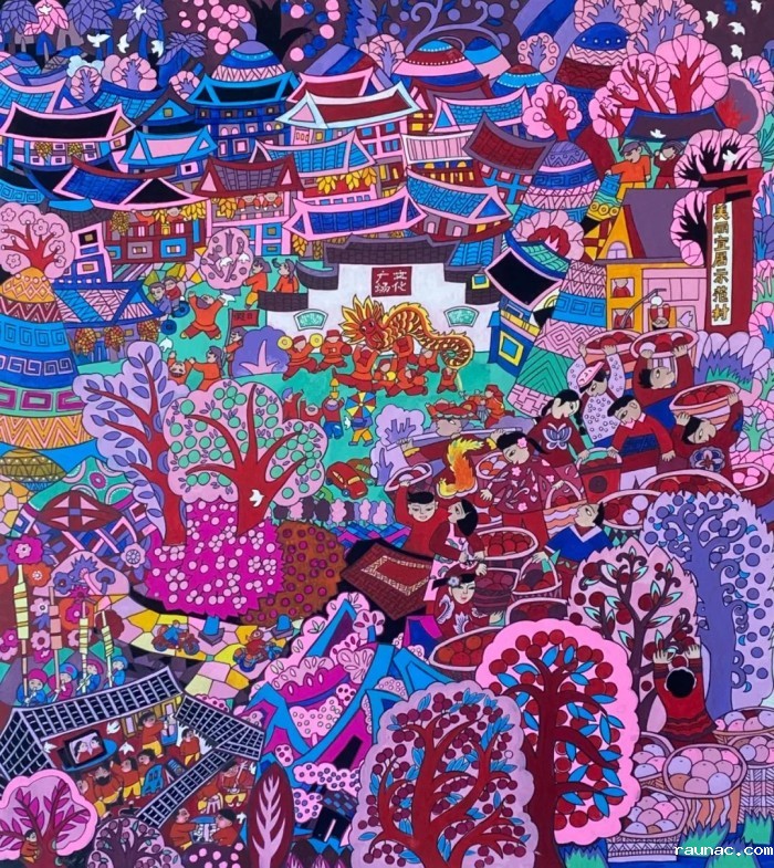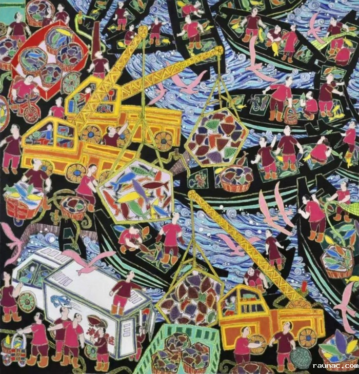 习近平总书记在党的二十大报告中指出:坚持以人民为中心的创作导向,推出更多增强人民精神力量的优秀作品,培育造就大批德艺双馨的文学艺术家和规模宏大的文化文艺人才队伍。百年征程波澜壮阔,百年初心历久弥坚。我们将始终遵循总书记的嘱托,用农民画热忱描绘新时代新征程的恢宏气象,坚守人民立场,用新时代的精品力作开拓文艺工作新境界。