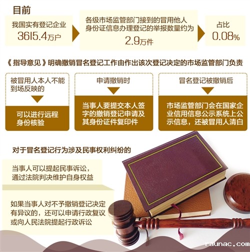 “现在有了《指导意见》,办事人员就有了政策依据,可以便捷地受理群众举报。”常宇介绍,《指导意见》明确撤销冒名登记工作由作出该次登记决定的市场监管部门负责。被冒用人本人不能到场反映的,可以进行远程身份核验。