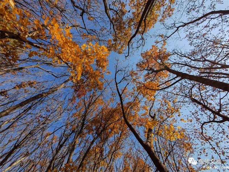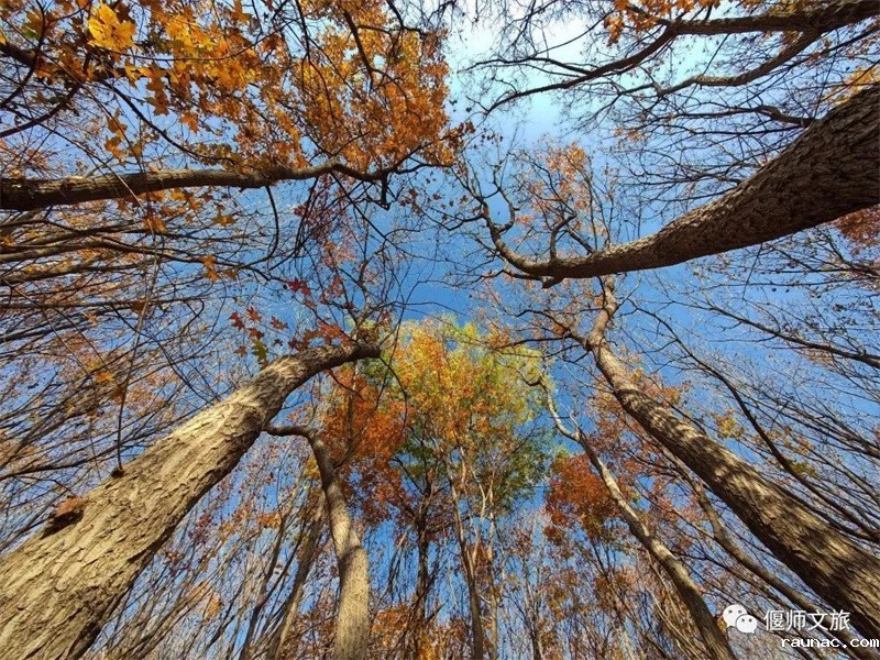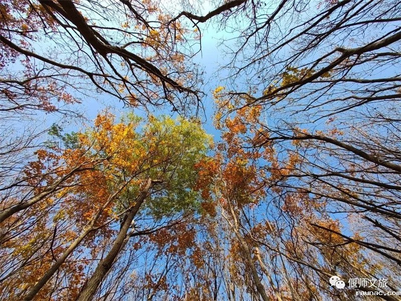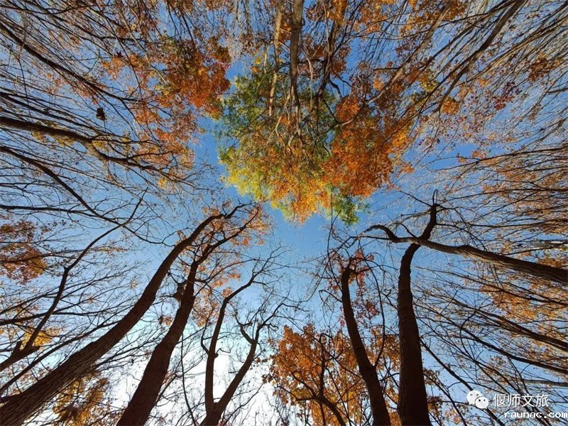 仰望这茂密的树枝,深秋的叶子,