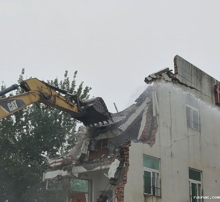 上午8点,槐新街道出动钩机2台,洒水车2辆开始挺进现场,对违建进行拆除。