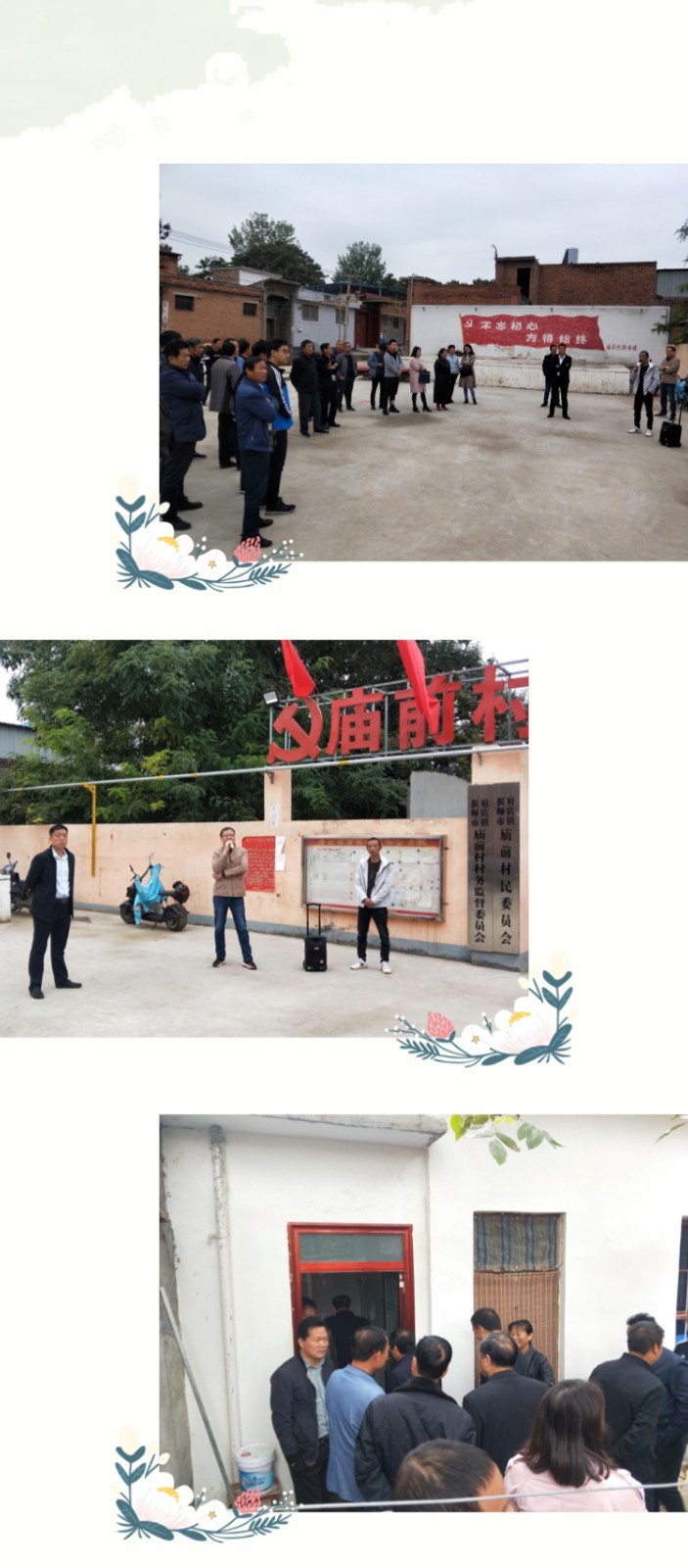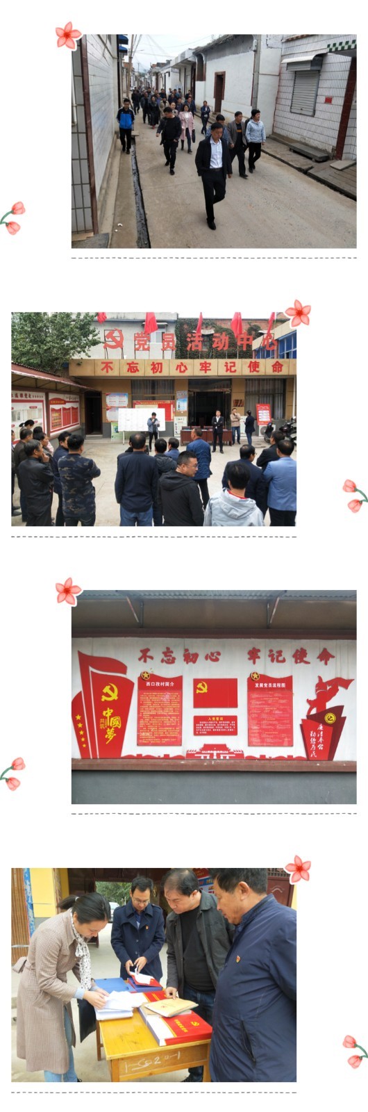 此次观摩活动,选取乡村振兴示范点周寨村和庙前村、“五星”支部创建示范点西口孜村、党群服务中心改造提升牛窑村等村作为观摩点,采取“看、查、听、评、谈、改”的模式,现场听取村党支部书记汇报,包括基层党建工作开展情况、“党建引领、‘三治’并进、服务进村”工作落实情况、目前改厕、双替代、环境整治等中心工作完成情况、主题教育工作开展情况等内容,查看“三会一课”、“三新”大讲堂、远程教育、主题教育等工作记录及相关档案资料。同时,结合观摩中发现的特色亮点、经验做法以及问题不足,谈感受、互交流,对观摩点工作进行点评,推广好的做法,指出存在问题,并提出相关整改要求。