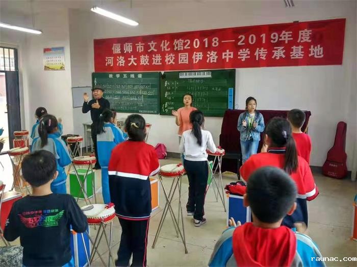 偃师市文化馆非遗进校园——伊洛中学剪纸社团培训、河洛大鼓培训。孩子们学多认真啊!