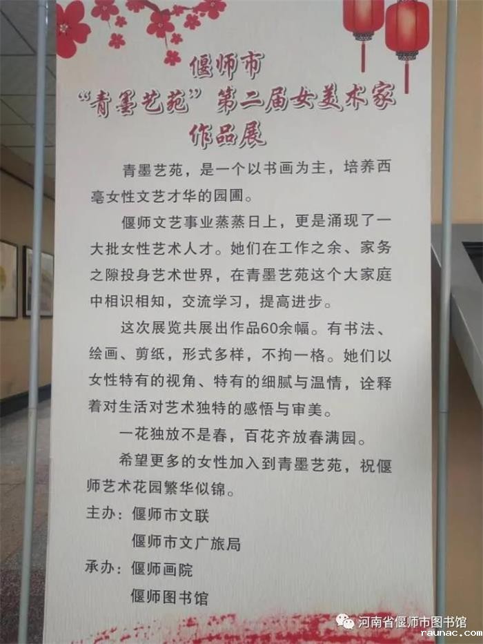 偃师市“青墨艺苑”第二届女美术家作品展在图书馆开展。