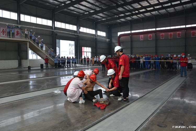 此次演练主要是针对蒸压釜蒸汽泄漏而开展的应急处置。预设事故发生后,该公司工作人员立即向有关负责人进行了报告,并迅速停止作业。该公司负责人在接到事故报告之后,立即启动了该公司的事故预案,组织人员赶赴现场,开展了事故现场保护,事故报告、事故处理等演练。
