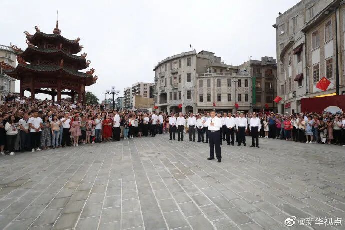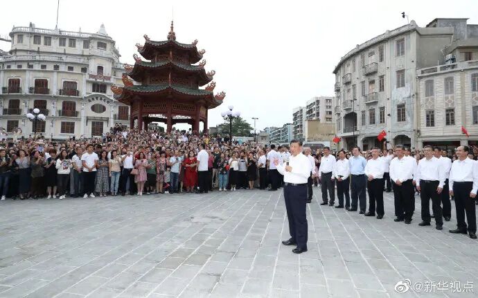 在广东省汕头市考察的习近平总书记步行察看开埠区街区人文历史风貌,同热情围拢过来的市民群众亲切交流。习近平强调,我此行到广东考察,就是进一步向国内外宣示,中国共产党领导中国人民将继续坚定不移走改革开放的道路,奋发有为推进社会主义现代化强国建设,锲而不舍努力实现中华民族伟大复兴的中国梦。父老乡亲们,让我们携手努力,共同奋斗!