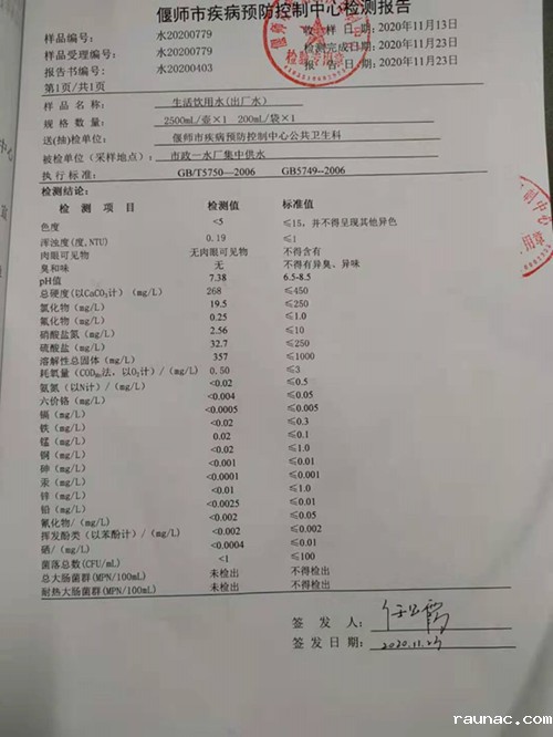 水质检测报告(市政一水厂集中供水)