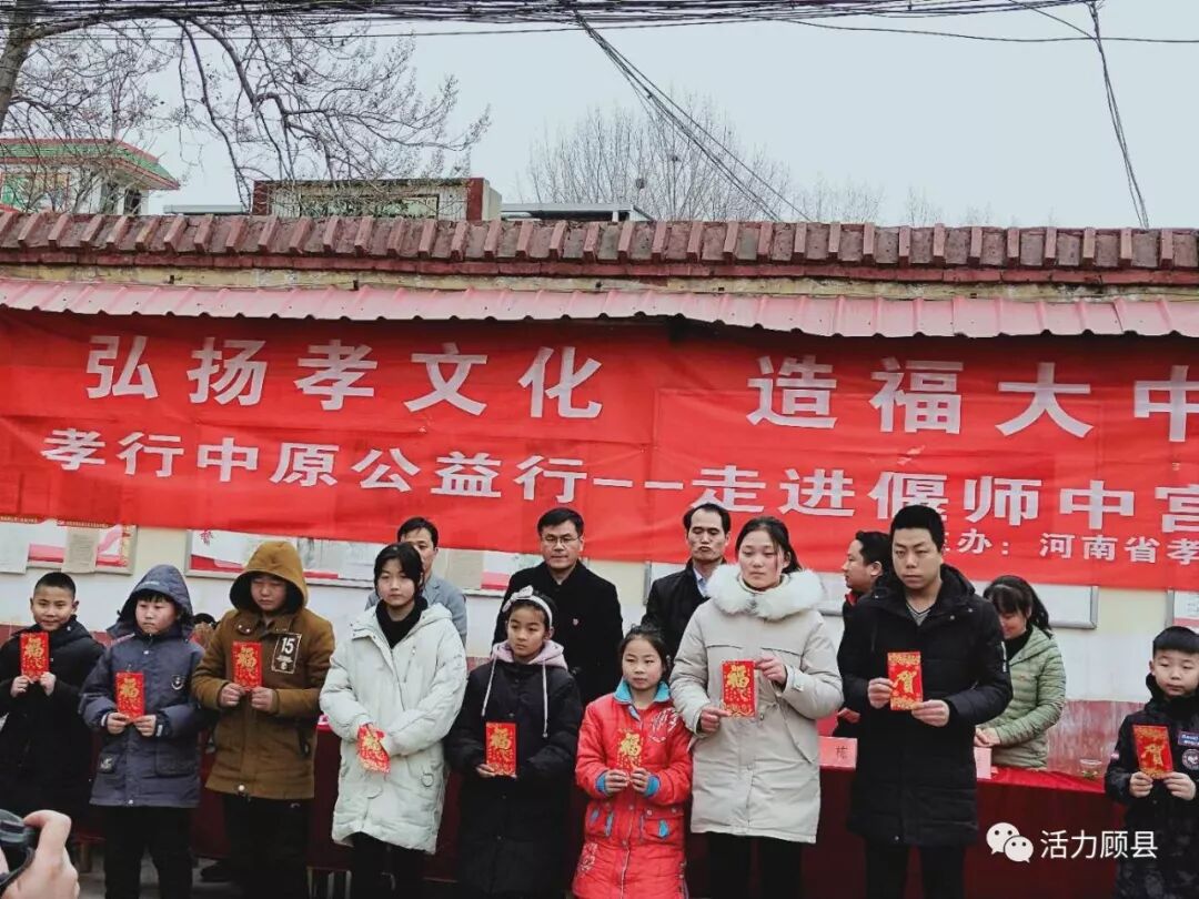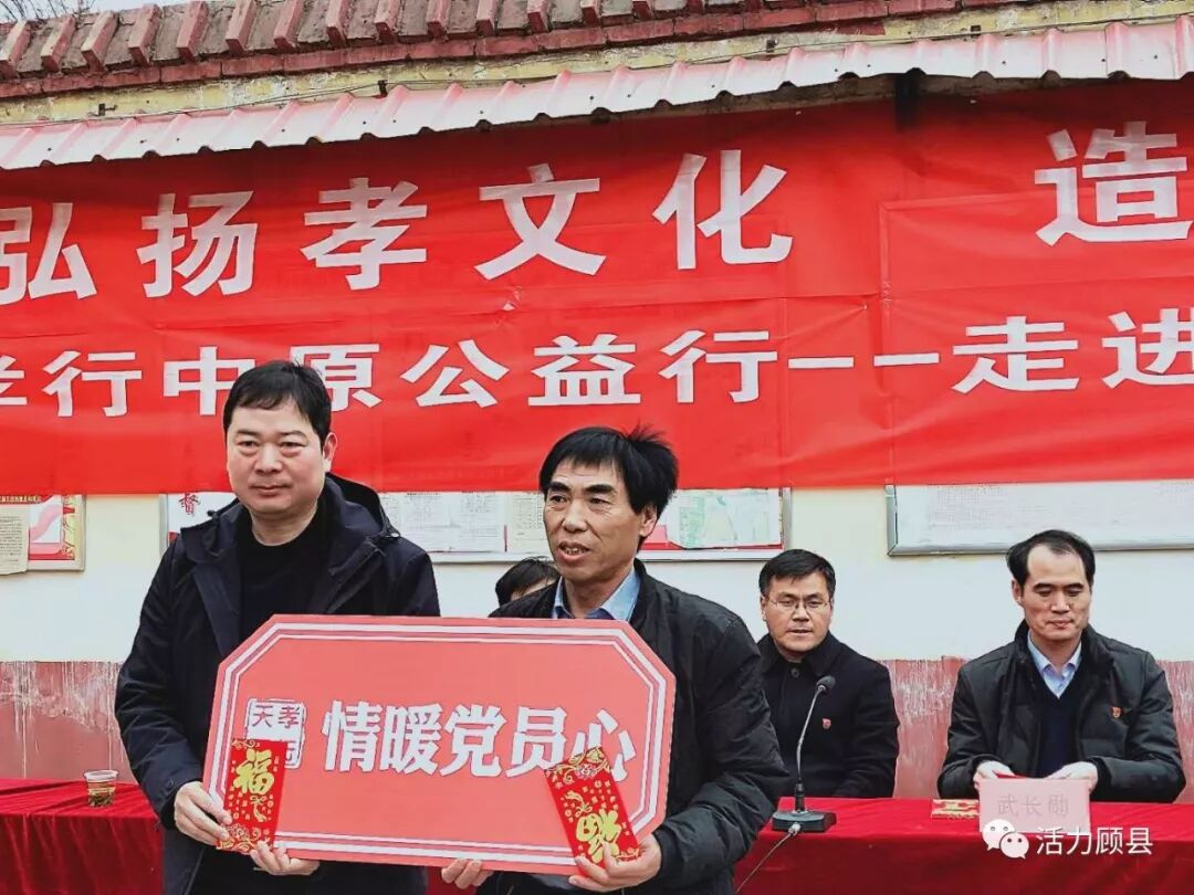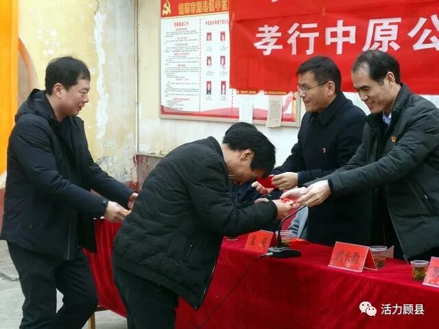河南省孝文化促进会孟亮会长率“孝行中原公益行”,第三次走进中宫底村,为10位好婆婆、10位好媳妇、10位孝心好少年、2位优秀党员每人颁发500元奖励金。
