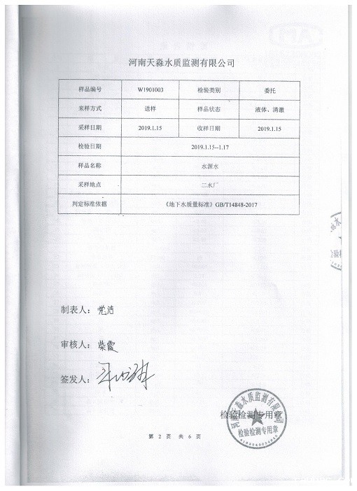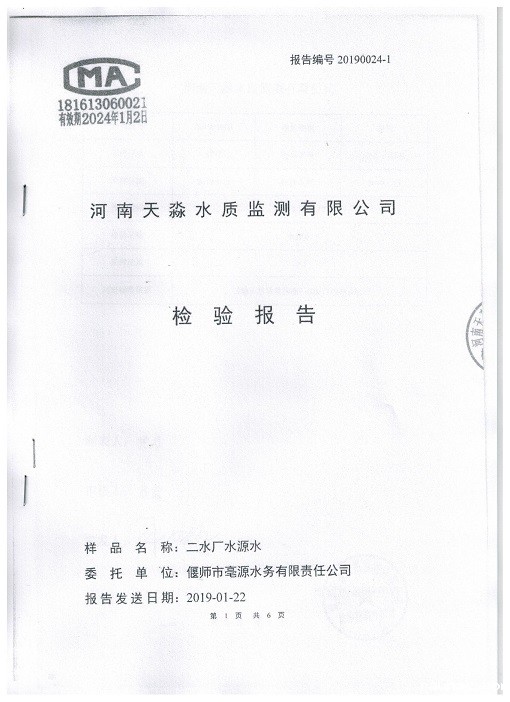 偃师市饮用水源地2019年1月监测报告