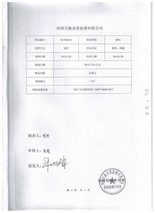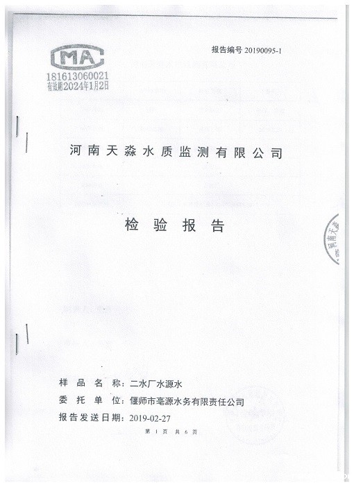 偃师市饮用水源地2019年2月监测报告