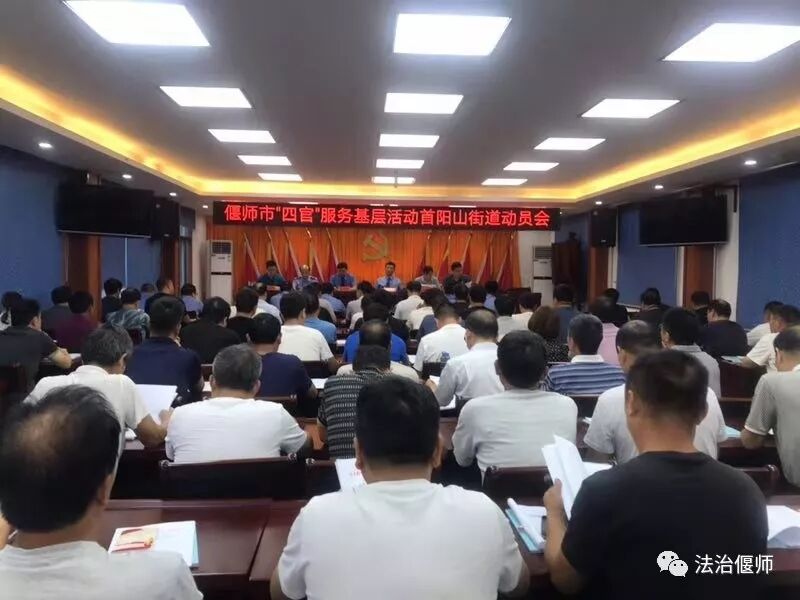 会后政法各部门迅速行动,分头到各镇(街道)召开动员大会。首阳山街道办7月9日下午召开"四官"服务基层动员大会,街道班子成员、包村干部,各村(社区)支书主任民调员,第二组组长副组长成员、各驻村工作队队长共100余人参加会议。