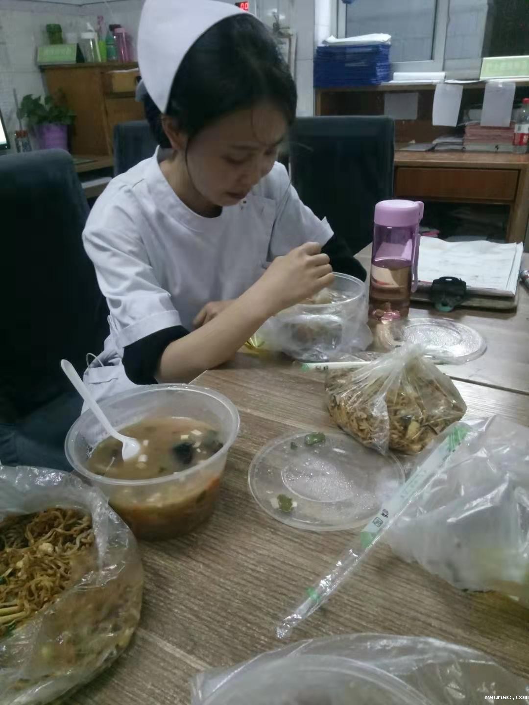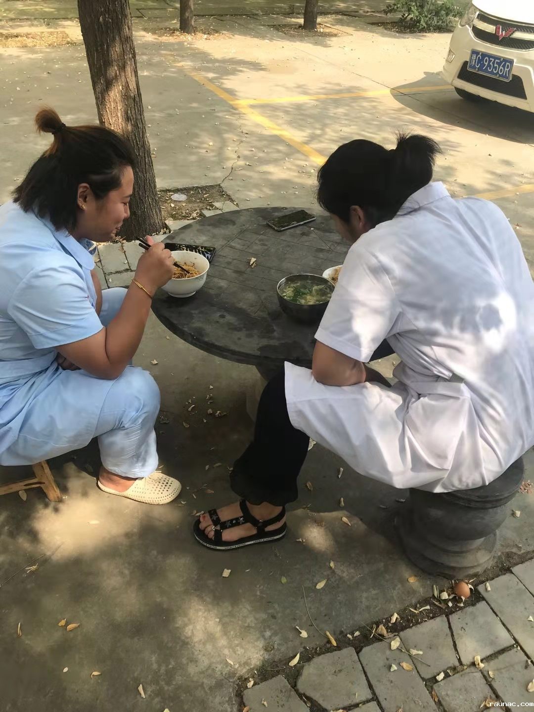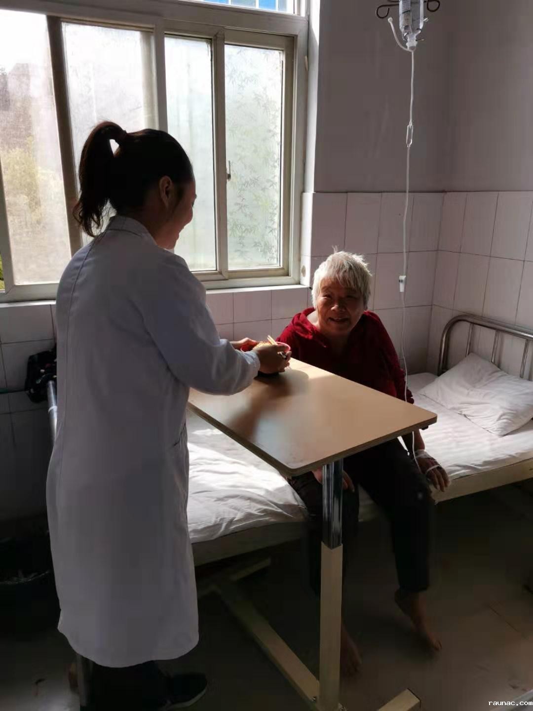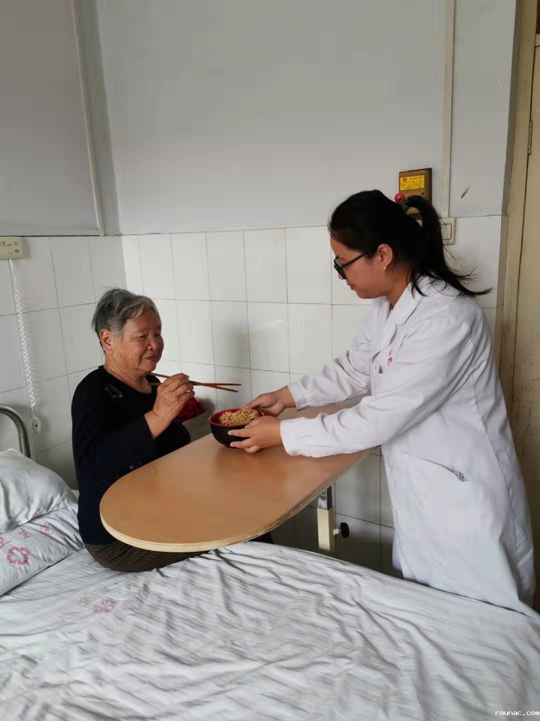 10月3日中午翟镇镇卫生院医护人员为住院患者送上一碗面,祝他们节日快乐,早日康复!