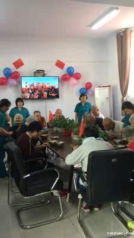 高龙镇卫生院医养照护中心的老人们共同吃面庆祝新中国成立70周年!